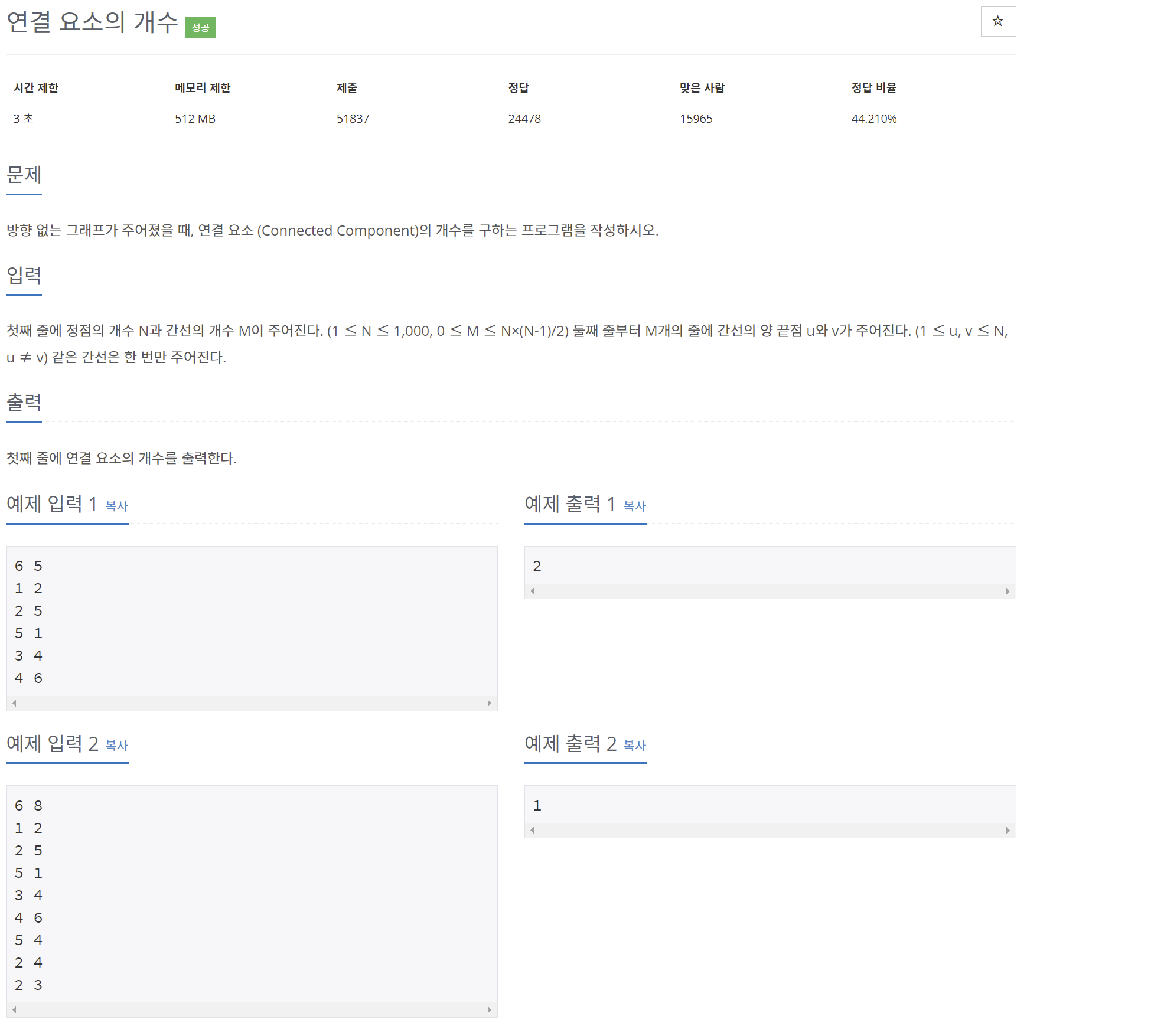 그래프의 연결 요소끼리 각 그래프의 위치에 추가하고 깊이 우선 탐색을 실시한다.